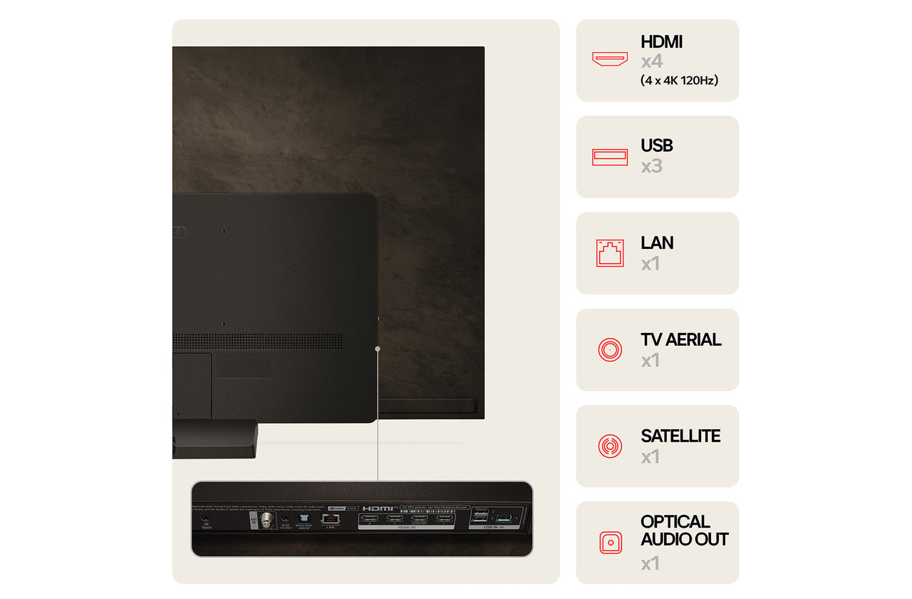 For gamers, this TV is a game-changer. Featuring HDMI 2.1, 4K at 120Hz, NVIDIA G-Sync, AMD FreeSync Premium, and LG’s Game Optimiser mode, it delivers ultra-smooth, low-latency performance for next-gen consoles and PC gaming alike. The ultra-slim design and minimalist stand complement any modern décor, ensuring your TV looks just as good when it’s off.