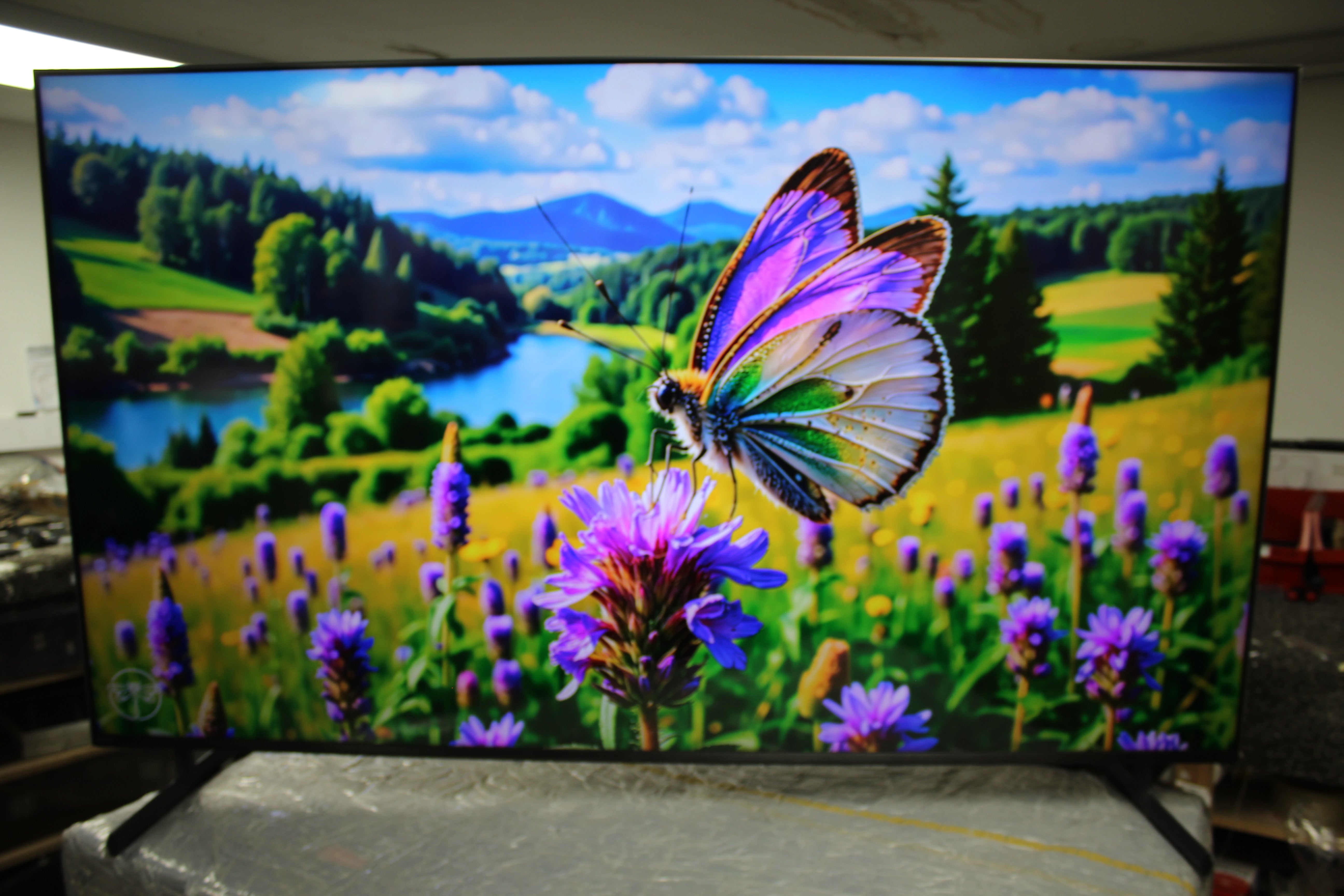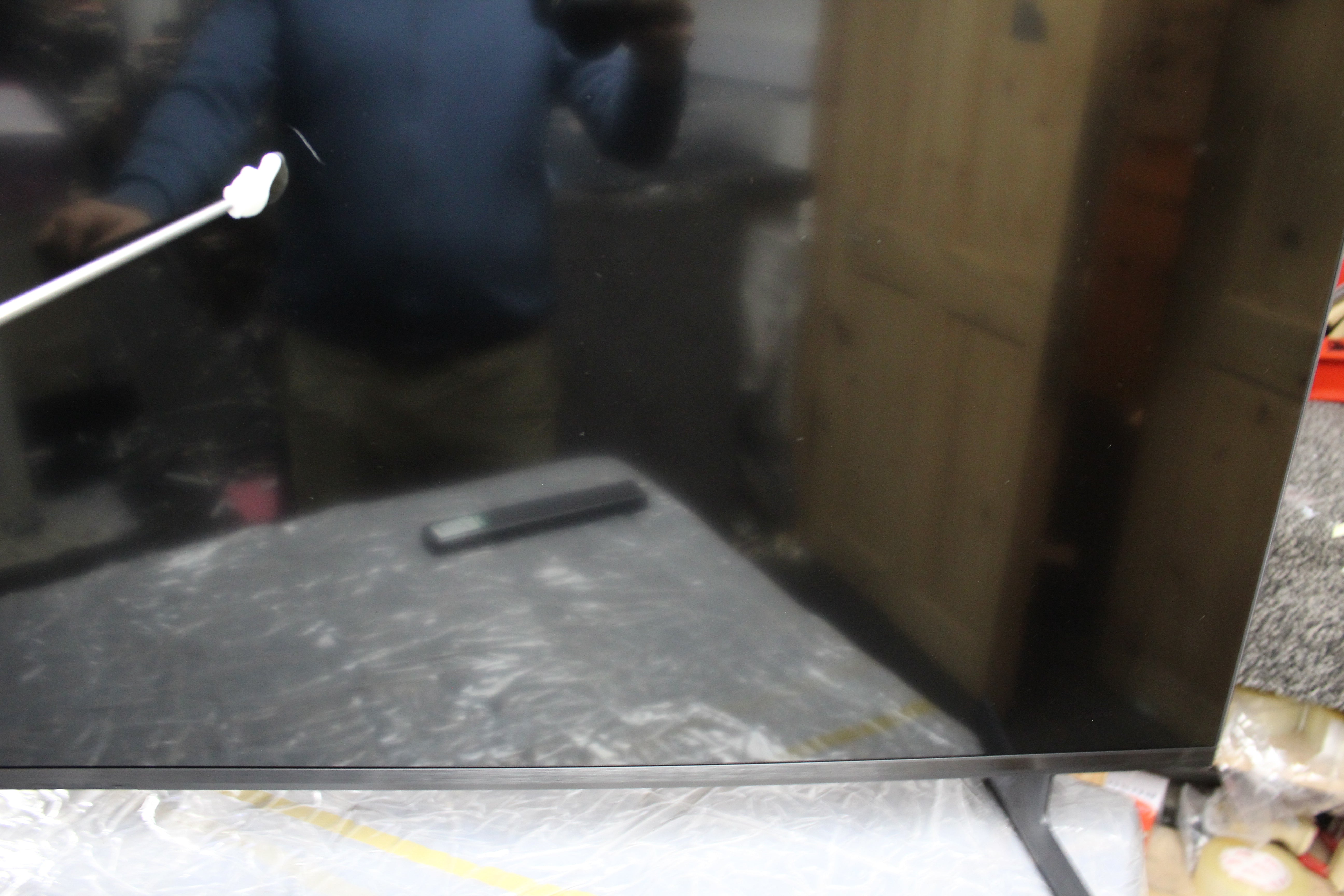 Item is supplied without the tabletop stand therefore must be wall-mounted. There is also a minor cosmetic mark on the screen. It is only visible on close inspection and blends into the image when the tv is turned on. See picture for more details.