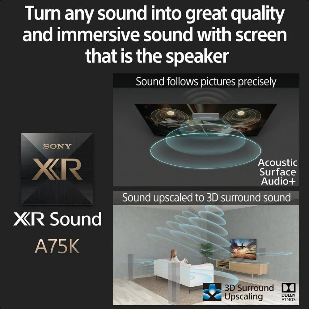 At Electronic World TV, we specialise in bringing you high-end televisions at heavily discounted prices, and the Sony XR65A75KU is no exception. With XR OLED Contrast Pro and XR Triluminos Pro, you get deeper blacks and over a billion colours, ensuring every scene looks as the creator intended. Whether you're watching Netflix, live sports, or playing on a PS5, this TV delivers a premium experience at a fraction of the cost you'd expect.